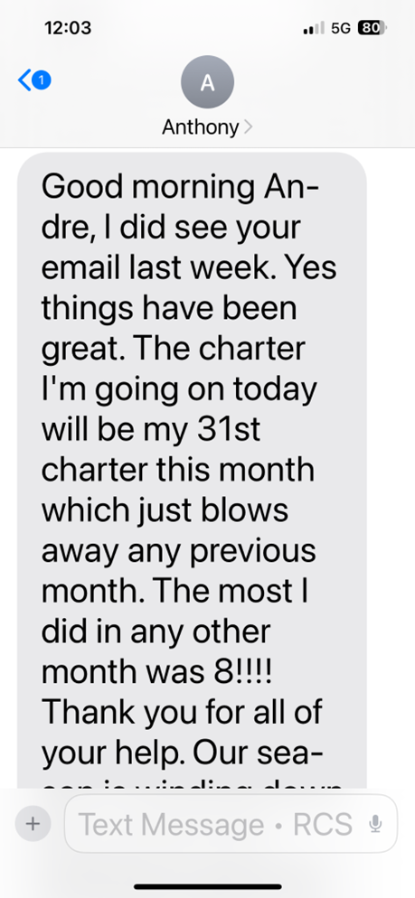 I know we all love being on the water, but we all want to make more money by taking more people out on the water and having fun.