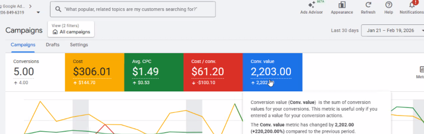 We tracked every call, every form fill, every conversion. $300/month in ad spend. One campaign. Built right.